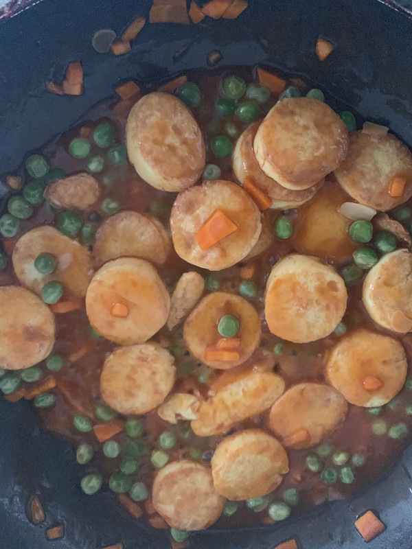 玉子豆腐易碎,轻轻滑动让豆腐均匀裹上料汁入味炖煮2分钟即可。