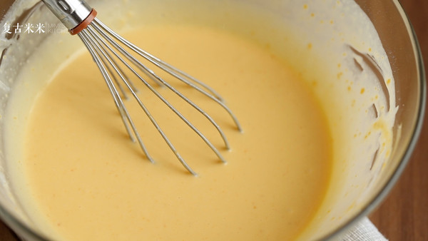 然后搅拌至白巧化开,倒入咸蛋黄,搅拌均匀
