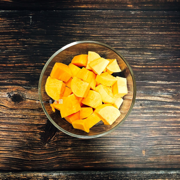 红薯洗净去皮切块,冷水入锅蒸15分钟