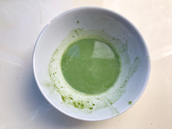 抹茶与20g开水混合成浓缩抹茶液,倒入20g奶酪糊混合均匀