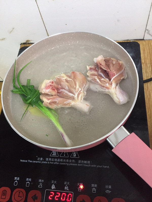 鸡腿放入锅内烫1分钟