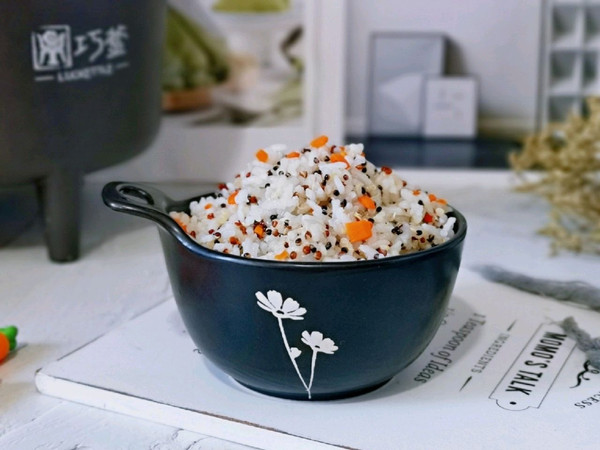 铛铛铛~脱糖胡萝卜藜麦饭好啦。看粒粒饱满的米饭,喷香喷香的,宝贝迫不及待的空口吃了一碗~