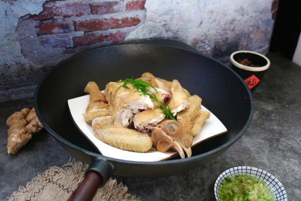 用筷子夹住鸡翅膀的两侧,吊干肚子里的水,摊凉即可斩件上桌!