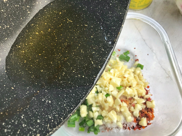 绿豆芽放入大碗,再倒入凉拌汁和香菜碎。
