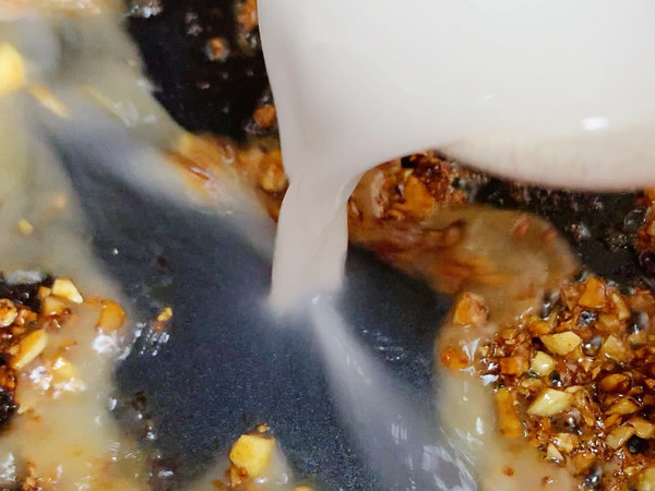 一勺淀粉加半碗水,混合均匀,倒入锅中,翻炒至汤汁浓稠即可。