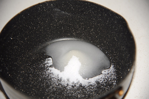 将水10g倒入锅中,在放入砂糖35g