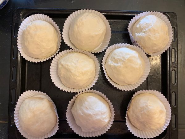 发酵2倍大,戳洞不回缩不塌陷发酵完成。