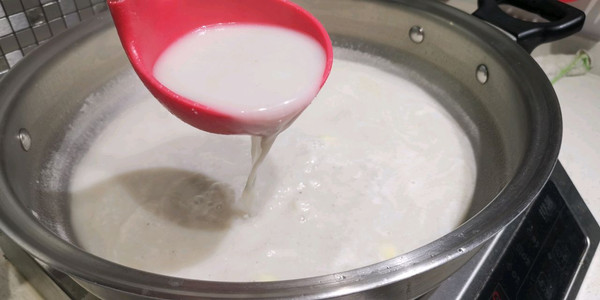 过滤完就是奶白色的浓郁鱼汤 这种高汤做法,便捷 比传统炖几个小时,节省时间