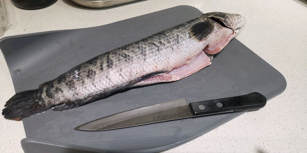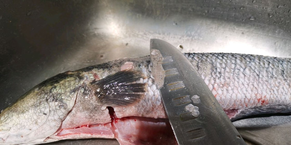用刀挂掉表面粘液 挂掉一些残余的鱼鳞