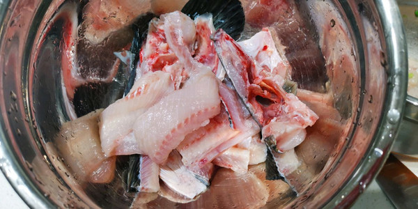 趁鱼骨泡着去腥 我们片鱼片 斜切