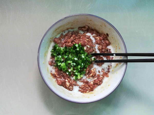 猪肉馅中打入1个鸡蛋,少许白胡椒粉、姜末,还有料酒,生抽,蚝油,黄豆酱,加入少许盐,搅拌均匀