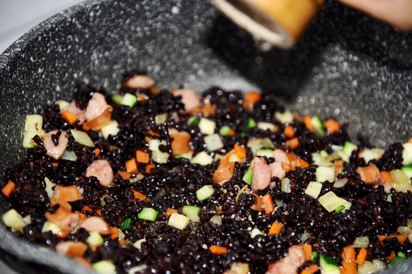加入煮好的隔夜紫米饭
