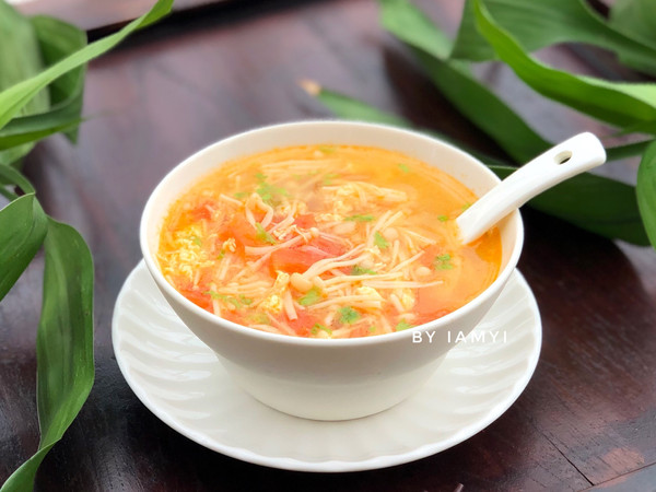 #快手又营养,我家的冬日必备菜品# 番茄金针菇汤(