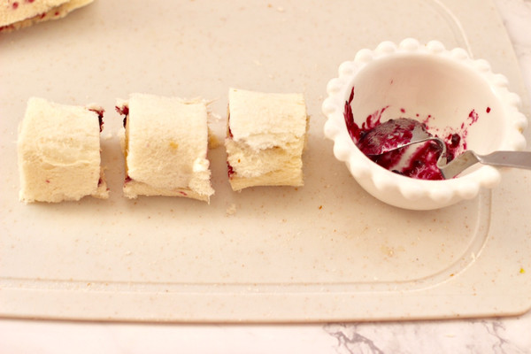 把吐司片从一头卷到另一头,记得要卷的紧一点
