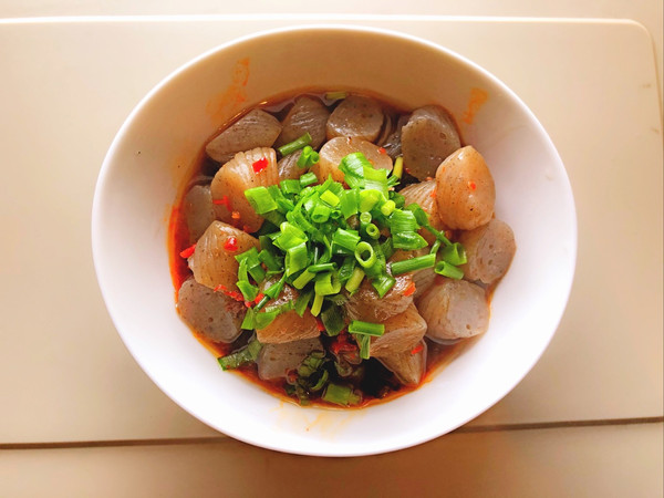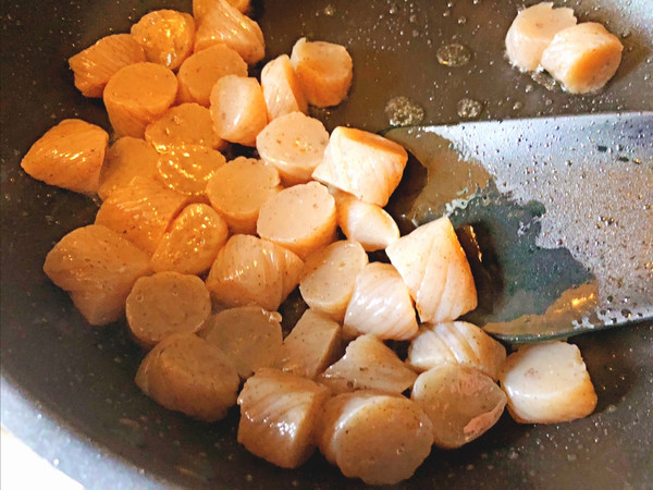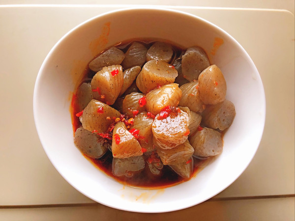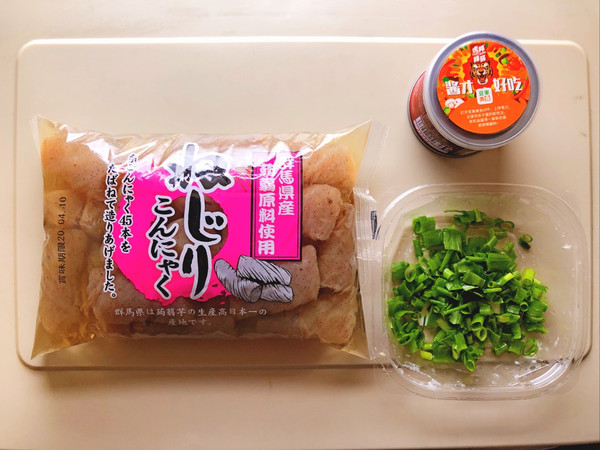 平底锅倒入少许油,油温五成热,放入魔芋块。