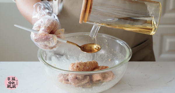 按照猪排腌料的配方把材料全部混合到一起抓匀,腌制猪排。