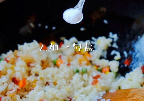 第6步骤 加米饭翻炒,记得一定要用过夜的米饭。