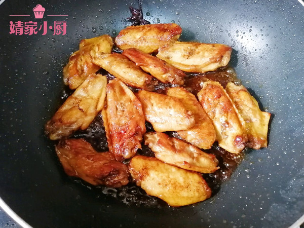 捞出的鸡翅一定要控下水,否则煎的时候油容易飞溅。