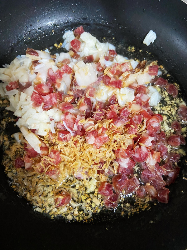 加入芋头翻炒调味➕蚝油、盐、胡椒粉、糖炒均关火