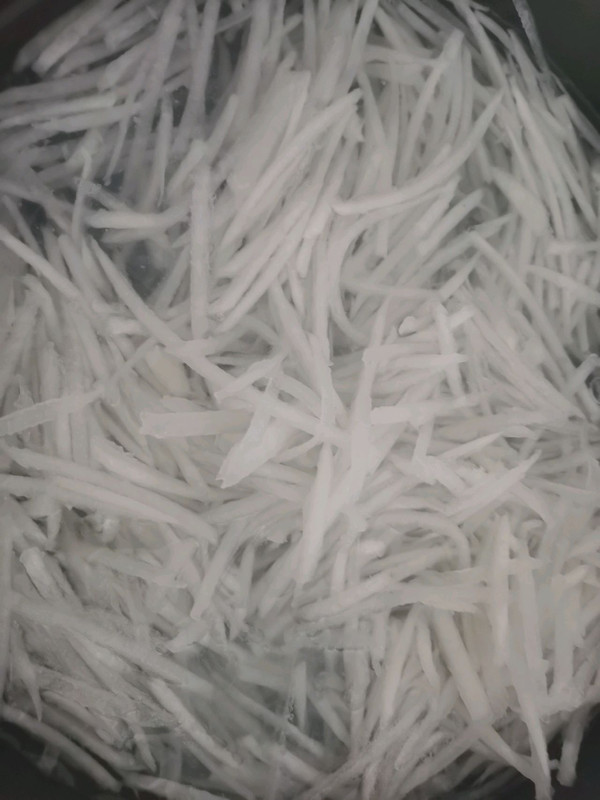 2,白萝卜洗净,去头尾,擦丝(最好擦粗条一点的)。