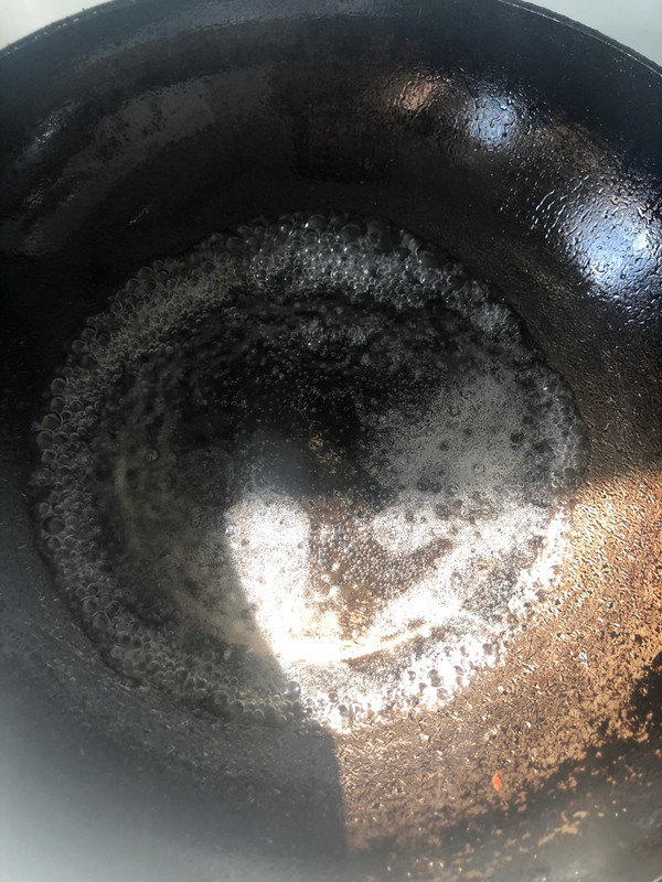 关键的一部来喽:还是用这个锅,把油倒出去,锅底倒入一点清水,准备熬糖