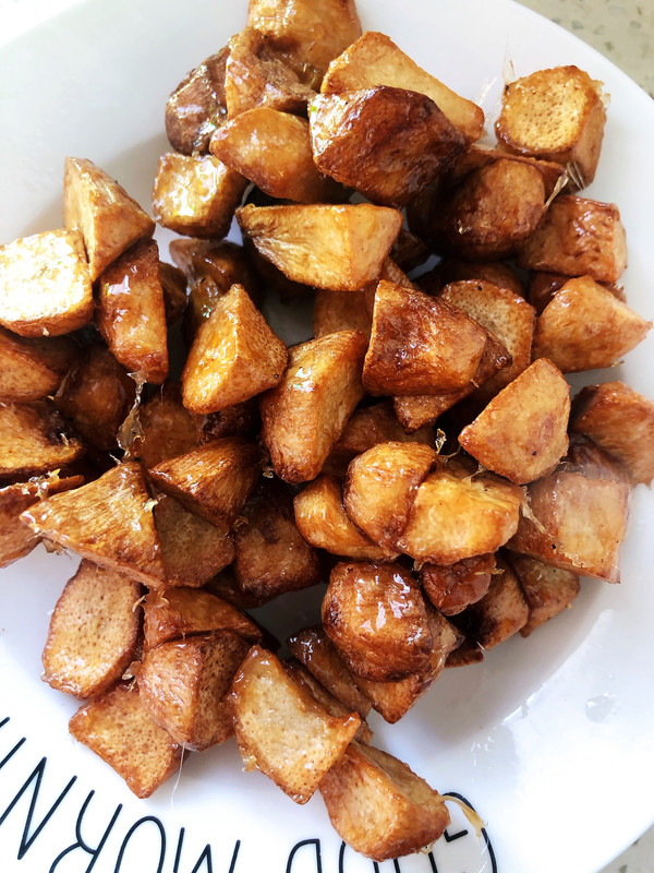 开始享用吧,这样做的拔丝芋头,一点都不硬,也不会特别甜腻,也不粘牙!总之就是特别好吃!喜欢的可以试试,小宝宝也很爱吃哦!