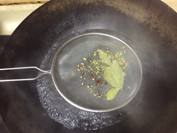 当骨头的水汽煸完,吐油,加一勺糖一起翻炒,增香增色。注意不要焦。