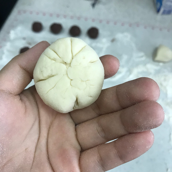 豆沙一个个搓好 放着备用 面团揉成条 切成一个个均匀大小的剂子