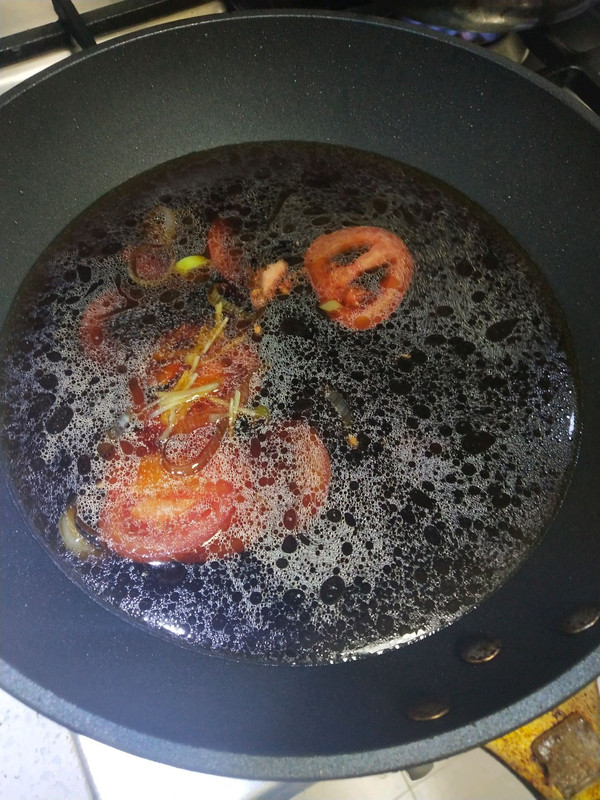 放入西红柿,姜