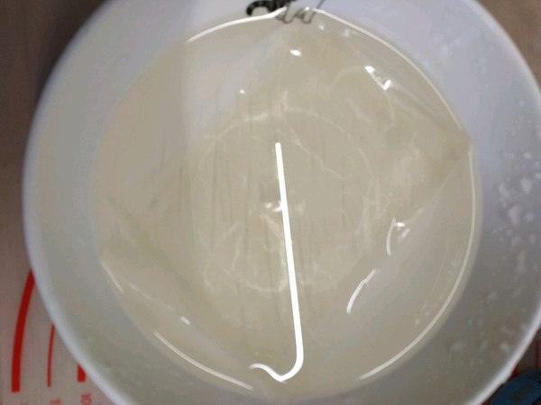 吉利丁片冰水泡软再隔热水融化成液体加到80克的猕猴桃果泥里