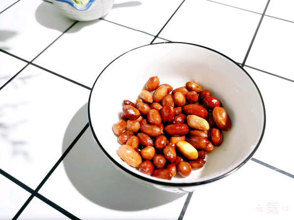 锅内放底油,将花生炒至金黄,盛出备用。