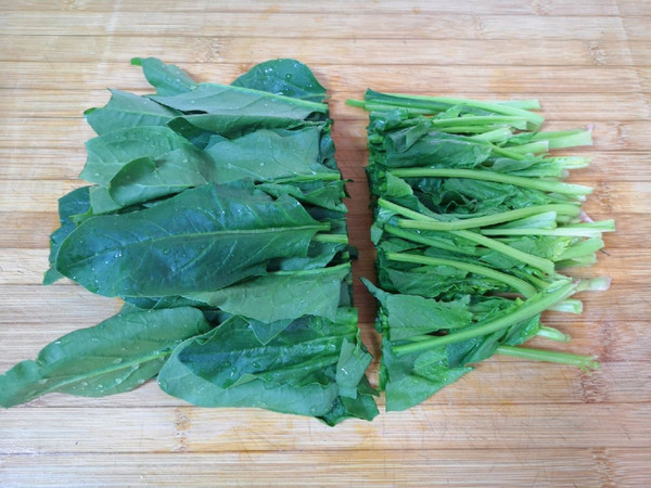菠菜清洗干净切成两段。