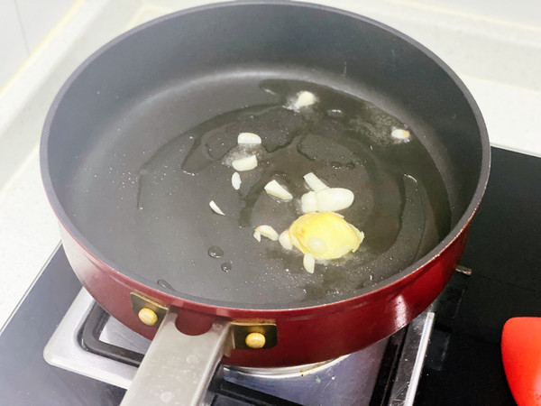锅里倒油,下姜片和蒜,略炒一会儿