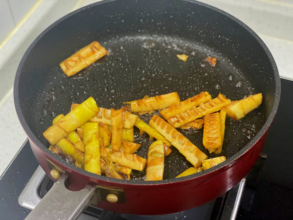 下笋,翻炒片刻。