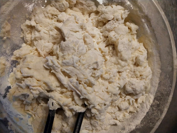 揉成如图这样的面团,盖上保鲜膜或是毛巾静至10分钟.