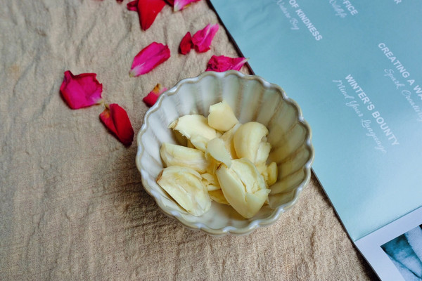 翻匀后,放剩下的蒜瓣,继续翻,约莫一分钟