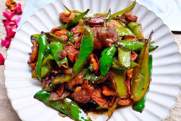 一道简单美味传统的辣椒炒肉就做好了。我的印象里,辣椒炒肉的肉吃起来一定不能是嫩嫩的口感,所以这肉是干香的那种。
