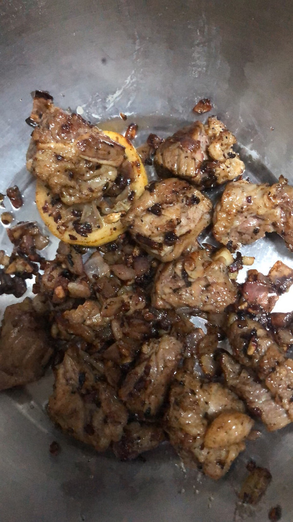 注意⚠️ 一面煎成硬壳再翻面,绝对不会粘,每一面都要上色,没有颜色就没有味道,锅里的焦糊味是味道的来源…… 但是我觉得这次煎的还不够焦,又怕糊,所以这样儿就先取出来了。
