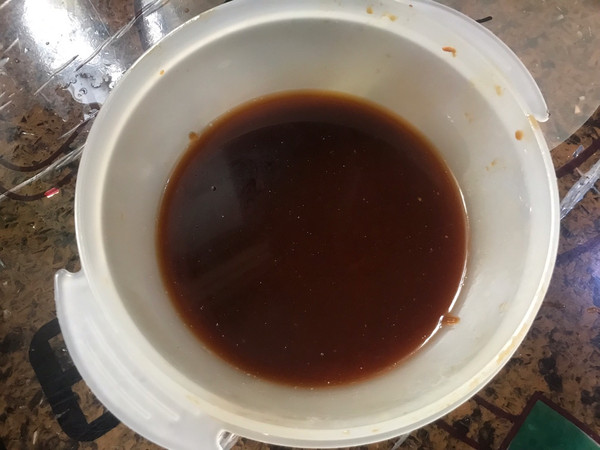 调一碗酱汁,生抽,蚝油,番茄酱,水,生粉,混合均匀备用