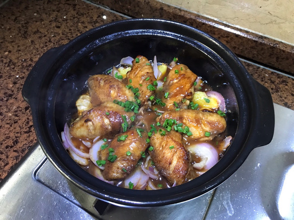 平底锅,热锅热油,中小火放入鸡翅煎至两面金黄色备用