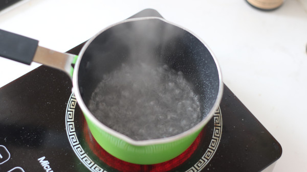 水,砂糖,朗姆酒一起加入不粘锅,煮至沸腾,酒气散去。(不建议省略朗姆酒,没有可以用高度清香型白酒替代)