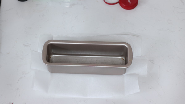 4. 折好的油纸放入磅蛋糕模具,即使是不粘模,我们也不要省略这一步骤。