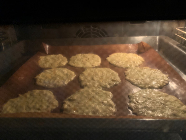 将面糊放在烤盘上,用沾水的叉子轻轻压平,