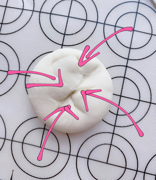 底部收好是这样的,非常工整,就是用手握住馒头在桌子上转圈就可以了,多练习