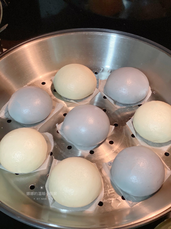 准备材料,白馒头就用清水或牛奶,浅蓝色的馒头是用的蝶豆花水,提前把蝶豆花用水浸泡,过滤备用