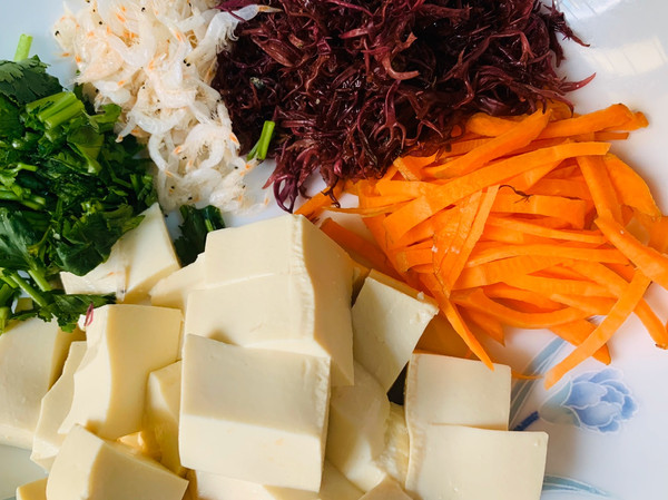 备料备齐(也可以再加点金针菇或者别的自己喜欢的食材)