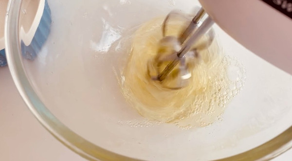 倒入蛋黄中,继续搅打,需要打至完全融合。