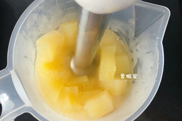 捞出沥水,放入料理机,用料理棒搅成泥