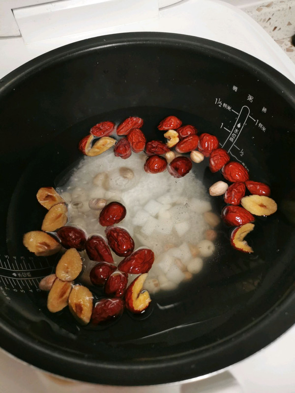 先将花生、莲子、红枣提前几小时用清水浸泡。