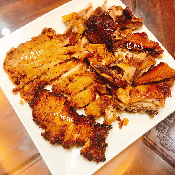 (我第一次弄就拿了一小块鸡肉弄了,所以哈哈哈和炸鸡排一起放了~)